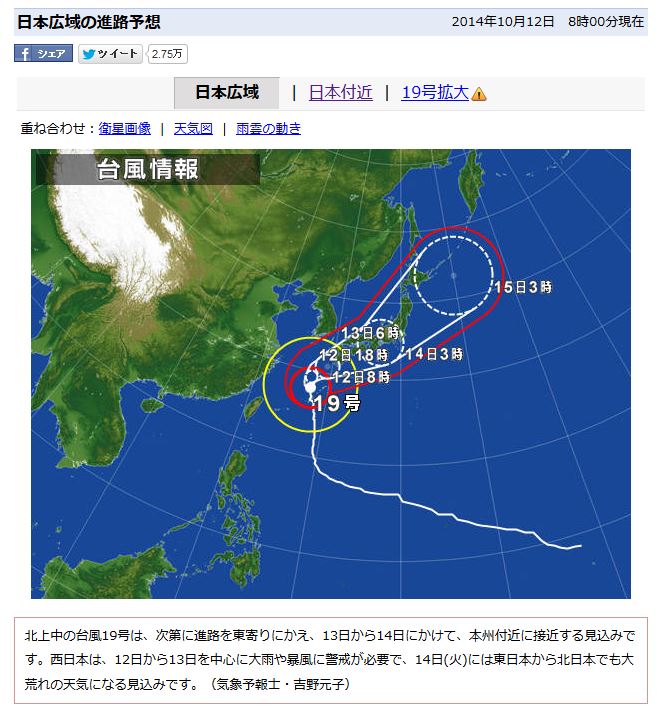 さて、2週続けて台風がやってくるわけですが、今回はかなり大型のようで・・・。